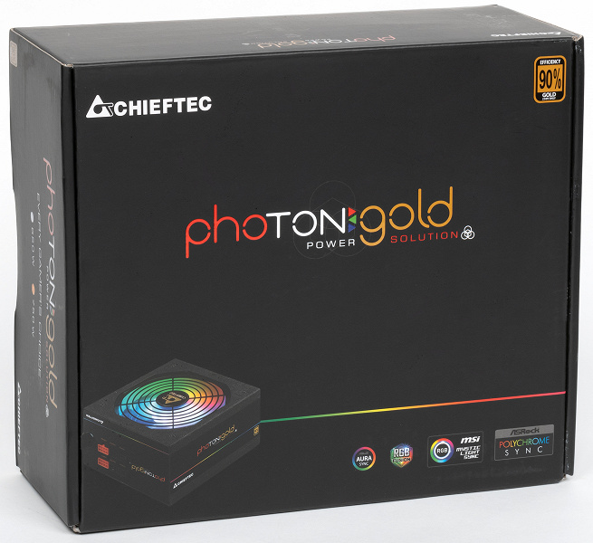 В прошлом году компания Chieftec представила сразу две серии блоков питания, оснащенных вентиляторами с подсветкой. Ранее подобных продуктов в ассортименте Chieftec вообще не было, но, видимо, «тренд сезона» добрался и до столь консервативной в хорошем смысле этого слова компании. В этот раз мы протестируем модель Chieftec Photon Gold 750W (GDP-750C-RGB) — старшую в серии Photon Gold. Всего в данной серии представлено две модели: мощностью 650 и 750 Вт.
