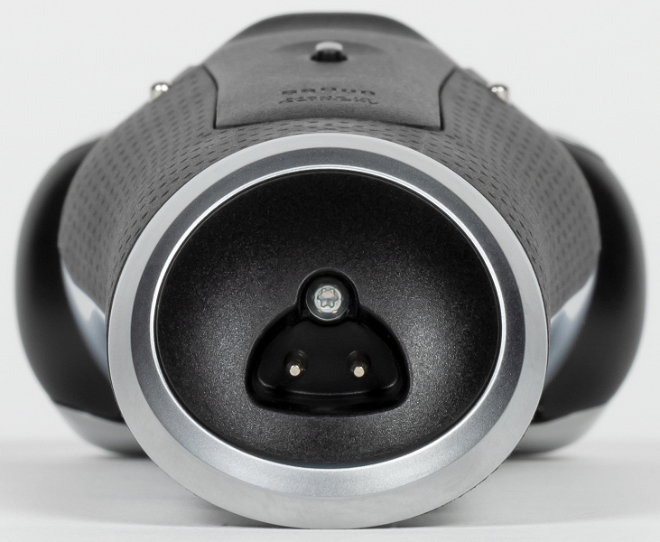 Под дисплеем на корпус нанесен логотип Braun. В нижней части бритвы расположен разъем для подключения зарядного устройства. Разъем — «фирменный», так что найти дома подходящий проводок или зарядное устройство взамен утраченного вряд ли получится, придется покупать в официальном магазине.