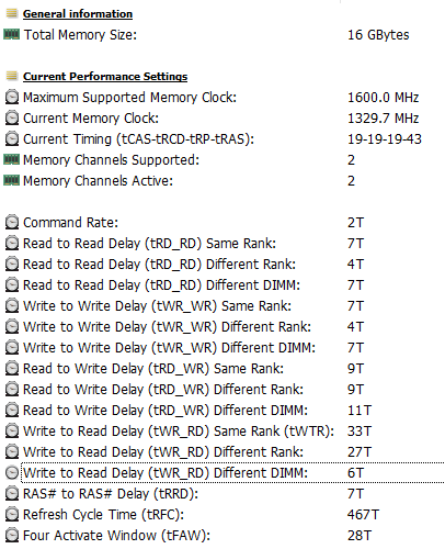 Оперативная память 2×8 ГБ DDR4-2667 МГц (двухканальный режим, 19-19-19-43 CR2)