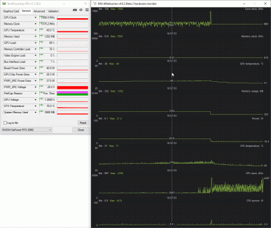 В тихом и сбалансированном режимах видеокарта Nvidia GeForce RTX 2060 работает на одинаковой частоте GPU 1,4 ГГц при потреблении в пределах 80 Вт и температурах 63-65 °C. Однако в игровом режиме частота GPU видеокарты повышается до 1,55-1,6 ГГц при 100-ваттном потреблении, а температура возрастает до 69 °C, даже несмотря на более высокую скорость вентиляторов и уровень шума.