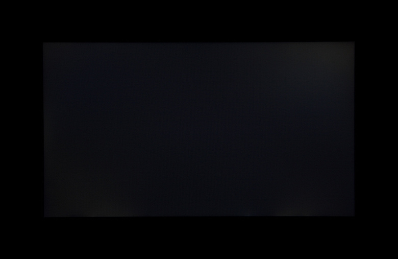 Если отступить от краев, то равномерность белого поля хорошая, а черного поля и как следствие контрастности хуже. Контрастность по современным меркам для данного типа матриц немного выше типичной. Фотография ниже дает представление о распределении яркости черного поля по площади экрана: