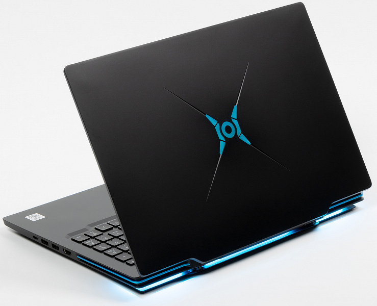 Из выделяющихся деталей, подчеркивающих принадлежность ноутбука к «геймерскому» ряду, отметим логотип на крышке корпуса с подсветкой и подсвечиваемую заднюю часть корпуса, которая приподнимается при открытии экрана.