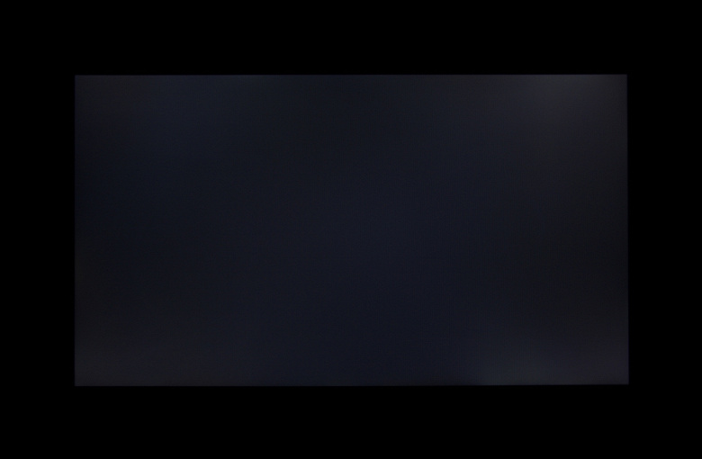 Даже если отступить от краев, то равномерность всех трех параметров средняя. Контрастность для данного типа матриц типичная, но сейчас бывает и выше. Визуально видно, что черное поле в основном ближе к краю слегка засвечено. Фотография ниже это демонстрирует: