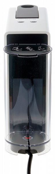 Сама емкость сделана из прозрачного пластика. Снизу по центру резервуара можно увидеть клапан подачи воды. Сверху расположена откидная пластиковая крышка, выполняющая по совместительству роль крепления резервуара к корпусу кофеварки (защелки). Объем его составляет 0,6 литра.
