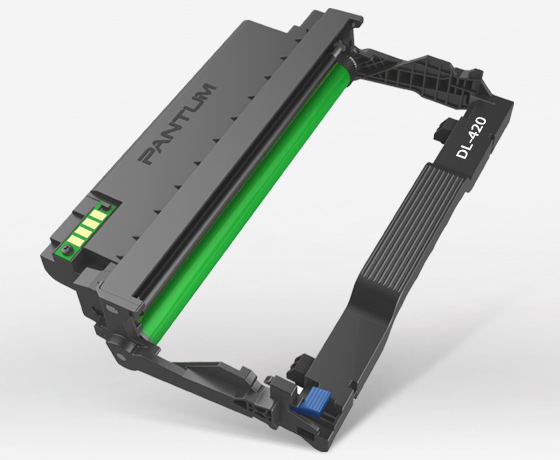 Также есть блок фотобарабана, на имеющемся в аппарате блоке есть обозначение DL-420HE, для него заявлена наработка в 12000 отпечатков. В доступных официальных материалах для замены предлагается DL-420 (то есть без двух последних букв) с ресурсом 30000 страниц.