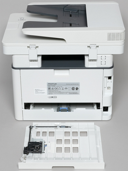 Единственной возможной операцией со сменными носителями является сохранение отсканированных документов, а печать каких-либо файлов с флешки не предусмотрена. Но не будем говорить «фи…» в адрес Pantum: в аналогичных недорогих моделях других производителей подобная ограниченная функциональность нам уже встречалась, а если печать и присутствовала, то ее реализация, мягко выражаясь, оставляла желать много лучшего.