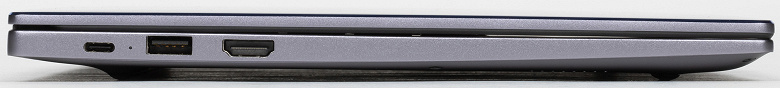 Напомним, что слева выведен USB Type-С (2.0) для зарядки (с индикатором), порт USB Type-A (также 2.0) и видеовыход HDMI, а справа — комбинированный разъем для наушников/микрофона и USB 3.0 Type-A.
