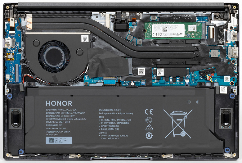 Система охлаждения в Honor MagicBook 14 точно такая же, как в 15-дюймовой модели.