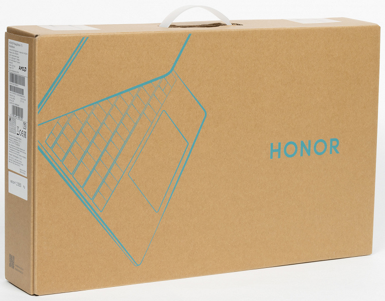 Honor MagicBook 15 поставляется в точно такой же картонной коробке, что и младший MagicBook 14, поэтому чтобы ненароком не перепутать их на выдаче в магазине внимательно смотрите на наклейку с торца коробки.