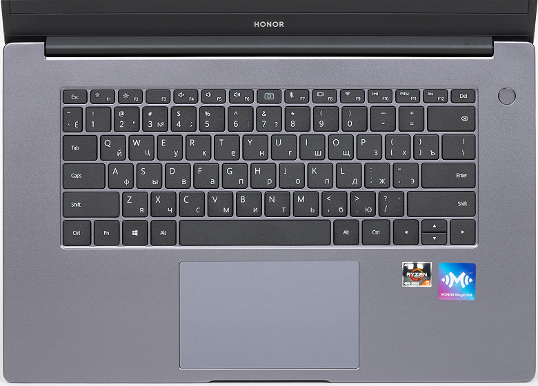 Можно ещё раз написать, что Honor MagicBook 15 не претерпел изменений в плане клавиатуры, но этот момент, на наш взгляд, довольно критичен. Просто посмотрите на боковые зазоры от края клавиатуры до края корпуса, ведь в сумме они превышают 70 мм!