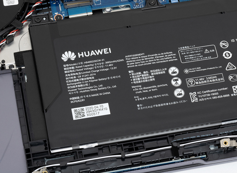 А вот аккумулятор в ноутбуке другой. Если MagicBook 14 оснащён аккумулятором ёмкостью 56 Вт·ч (7330 мА·ч), то у MagicBook 15 ёмкость аккумулятора всего 42 Вт·ч (3665 мА·ч), что вряд ли может радовать будущих владельцев этой модели ноутбука.