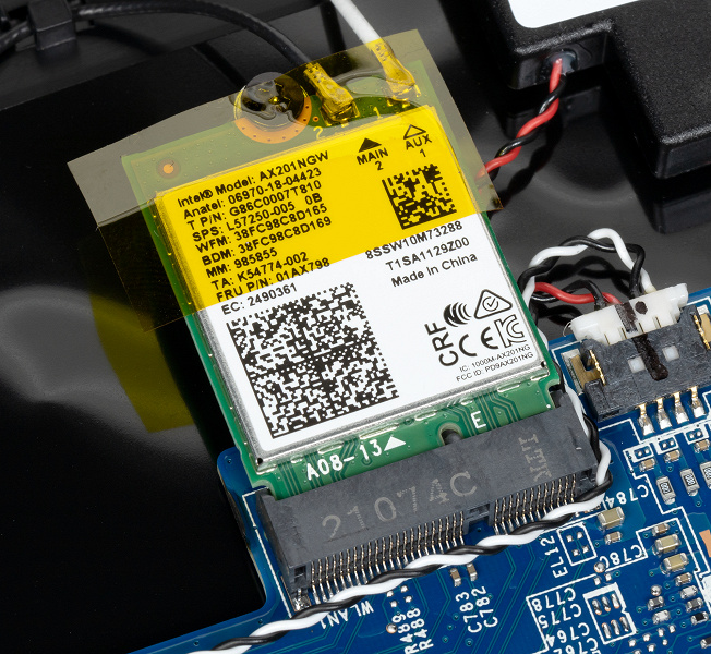 Беспроводной адаптер Intel AX201NGW не прикрыт SSD-накопителем и другими компонентами, и это хорошо.