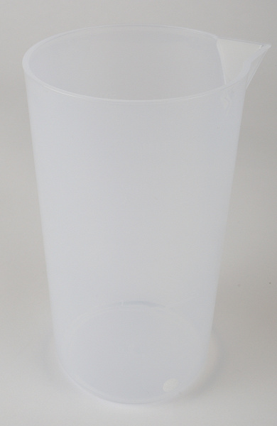 Узкий прямой стакан в комплекте сделан из непрозрачного пластика с метками объема до 500 мл, а также в унциях. У стакана имеется носик, что всегда является плюсом.