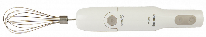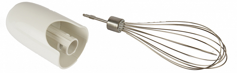 Насадка-венчик выполнена из белого пластика со съемной металлической частью собственно венчика. Он представляет собой шесть пересекающихся дуг, легко вставляется и вынимается.