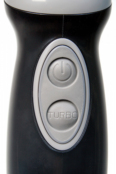 Управление прибором не представляет никакой сложности. Верхняя кнопка — основной режим (низкая скорость работы блендера), нижняя кнопка — турборежим, в котором блендер работает на максимуме своих возможностей. Индикаторов и возможности изменять скорость работы блендера не предусмотрено.