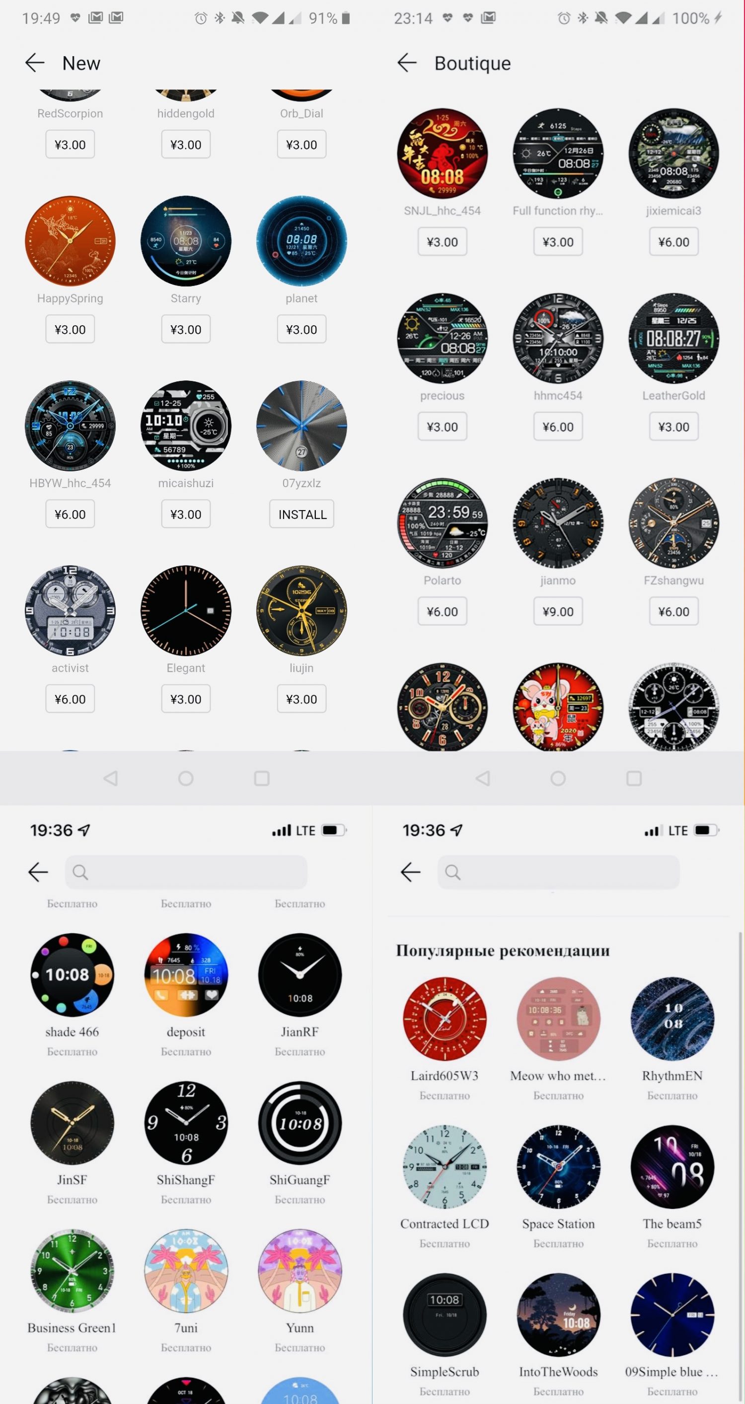 В итоге из 180+ циферблатов можно использовать в лучшем случае штук 7. Это крайне печально. Причём есть нормальные, но они доступны только при подключении к Android-смартфону и стоят денег.