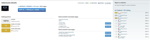 Условия разгона не сообщаются (разве что приводится напряжение ядра — 1,752 В), но отмечается, что все ядра при этом оказались активны. Протестированная бенчмарком Cinebench R15 система набрала 2628 баллов и сразу же заняла первое место в рейтинге шестиядерных систем.