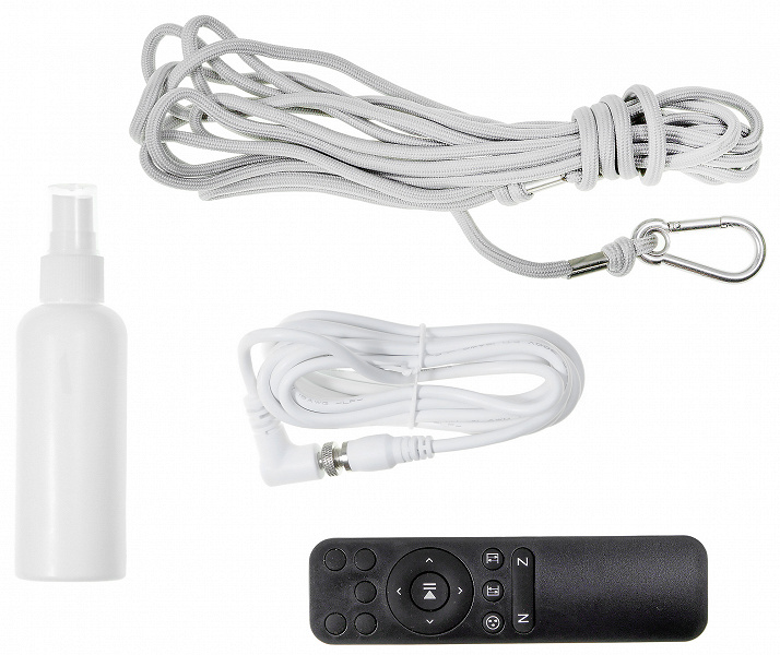 Также в комплекте обнаружился пульт дистанционного управления и бутылочка для распыления чистящего средства.