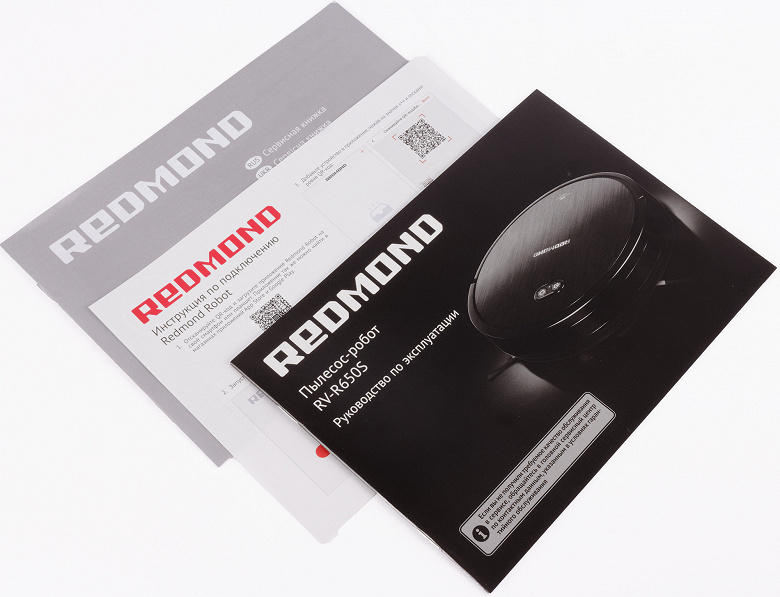 Дизайн упаковки настойчиво обращает внимание пользователя на то, что Redmond RV-R650S не только производит влажную и сухую уборки, а еще и обрабатывает поверхность ультрафиолетом: в 2020 году это актуально и модно. Также мы видим, что роботом можно управлять с помощью мобильного приложения.