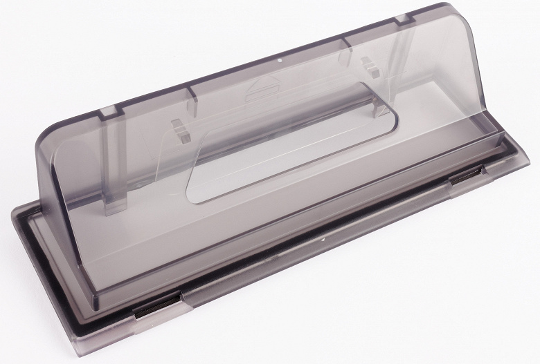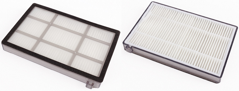 Прямоугольный фильтр тонкой очистки представляет собой HEPA-элемент с уплотнителями по периметру. В корпусе мусоросборника он фиксируется упругой стальной планкой.