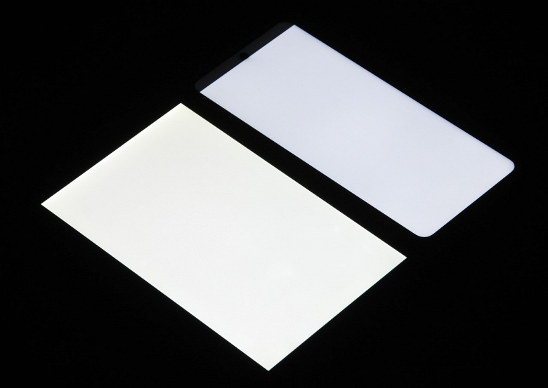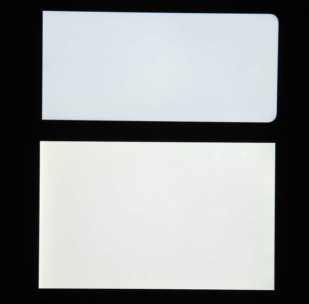 При перпендикулярном взгляде равномерность черного поля отличная (для наглядности яркость подсветки на смартфоне установлена на максимум):