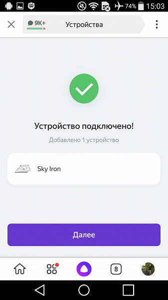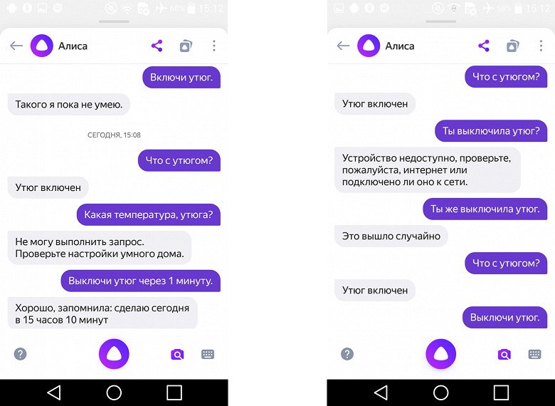На вопрос «что с утюгом?» Алиса поочередно отвечала нам, что он включен или выключен, не имея доступа к данным температуры, режима или положения. Иногда она отвечала невпопад, и мы возвращались к пульту, чтобы проверить, в каком же статусе утюг.