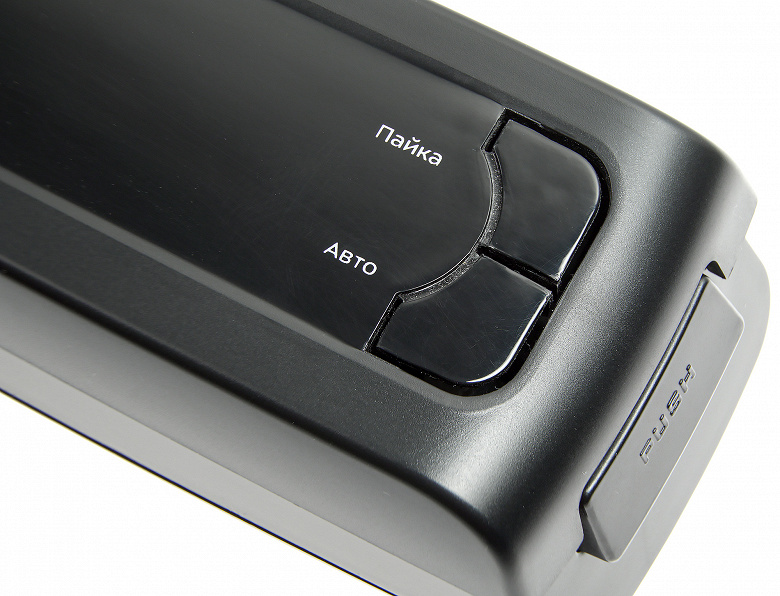 Кнопки на корпусе — не столько кнопки, сколько частично вырезанные в корпусе лепестки, при давлении на которые активируются маленькие управляющие кнопочки внутри прибора. С одной стороны, через прорези внутрь может попасть капля воды с пальцев или грязь, с другой — для нас не составило труда прикасаться к прибору только чистыми и сухими руками. Во время работы диоды внутри корпуса загораются синим (вакуумация) или красным (запайка), что можно увидеть через прорези в крышке. Нам показалось непривычным, что нажатие кнопки не сопровождается звуком, а подсветка не особо заметна в ярко освещенном помещении, поэтому в первый раз мы нажали кнопку несколько раз, пока разобрались.