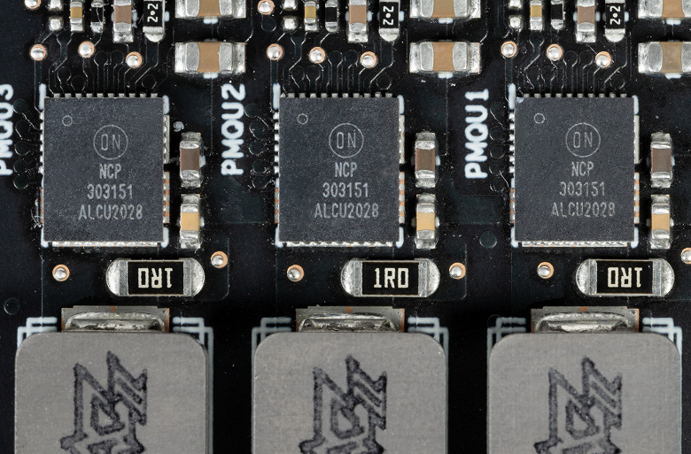 А в схеме преобразования питания микросхем памяти применены знакомые сборки NCP303151 (On Semiconductor), рассчитанные на максимальный ток 50 А.